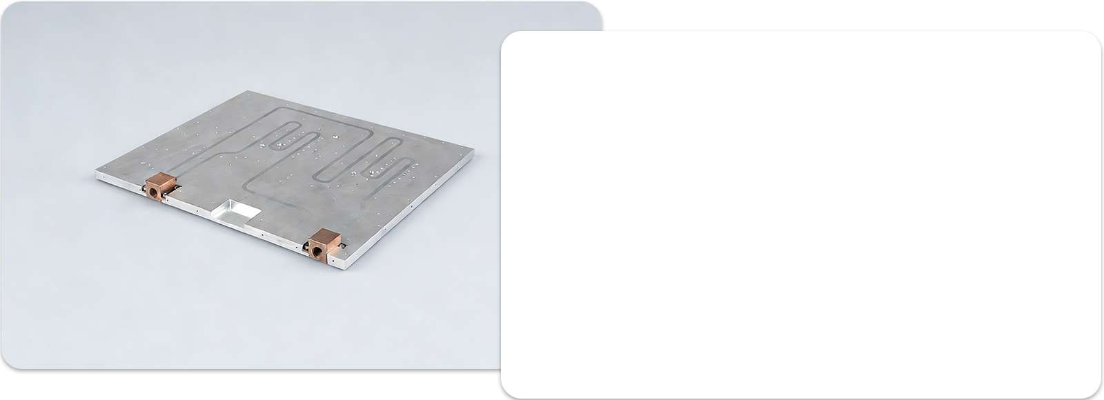 Заменная холодная пластина: внутренняя структура может быть спроектирована с чрезвычайно сложными плавниками или микроканалами или микроканалами, чтобы максимизировать площадь контакта между охлаждающей жидкостью и материалом холодной пластины, тем самым достигая чрезвычайно низкой теплостойкости и более высокой эффективности теплопередачи.