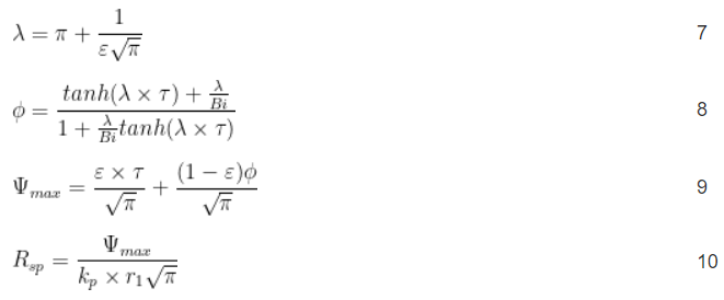 Сопротивление термодиффузии (R sp ) является результатом теплового потока за счет проводимости между площадью контакта оболочки на поверхности пластины и большей площадью охлаждающей поверхности пластины. Ли и др. В [1] установлено замкнутое уравнение для R sp . Эти уравнения обеспечивают очень близкое приближение к точным решениям, но не будут обсуждаться здесь из-за сложности необходимых вычислений.